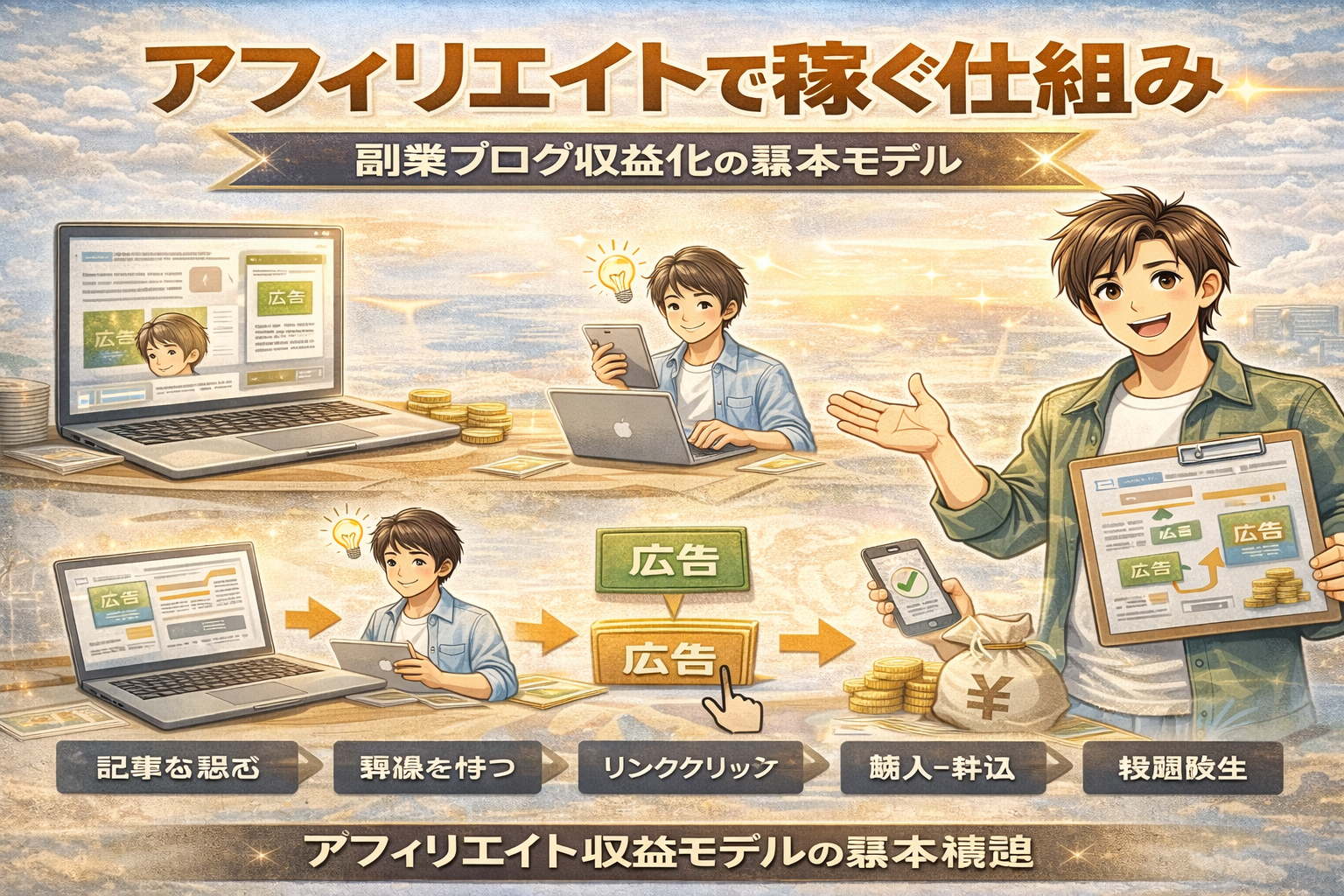 アフィリエイトで稼ぐ仕組み|副業ブログ収益化の基本モデル